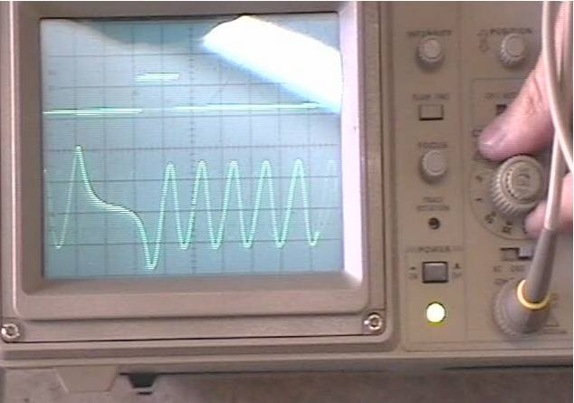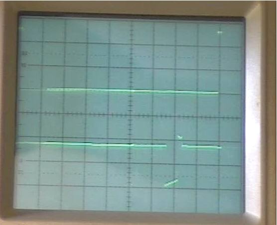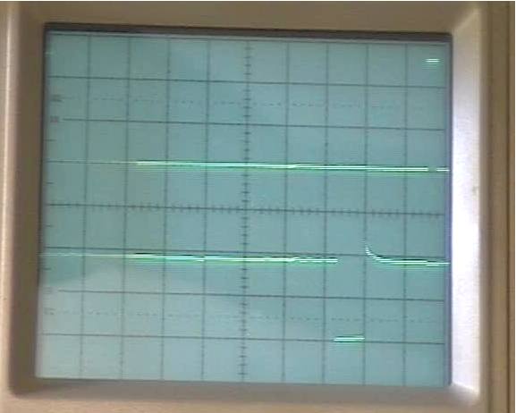 sync at about 9 1/2 divs ( 5 ms/div ). 2nd trace is taken after my input